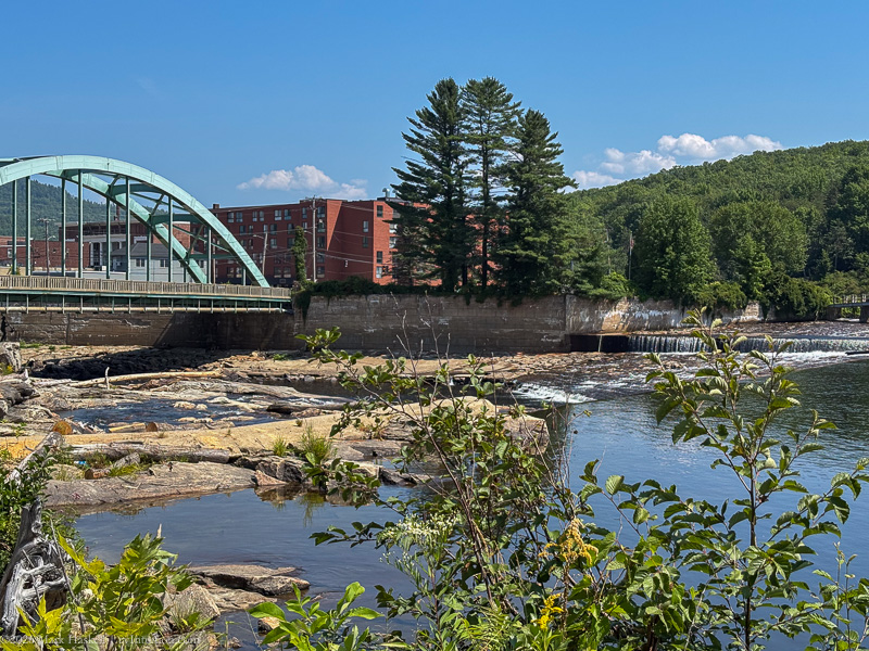 The Androscoggin River drops 176 feet over several sets of waterfalls as it passes through town.