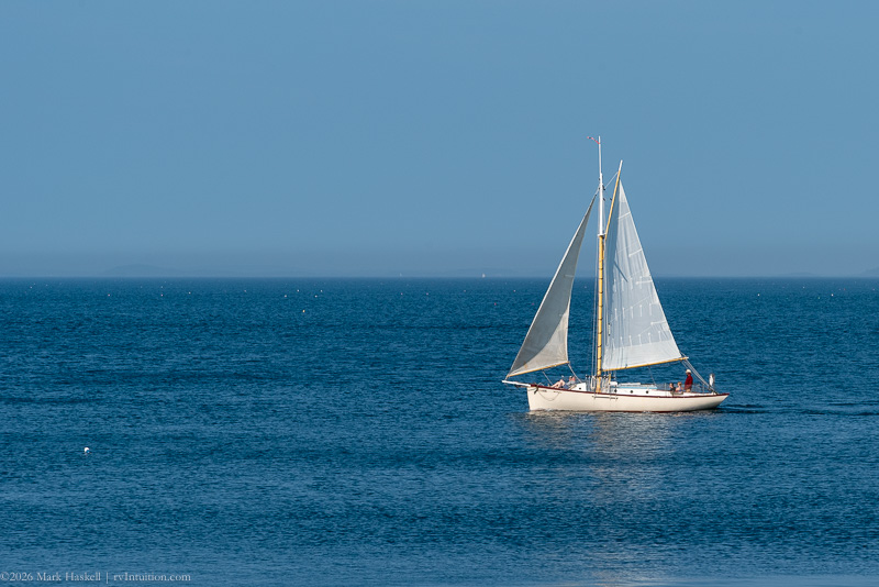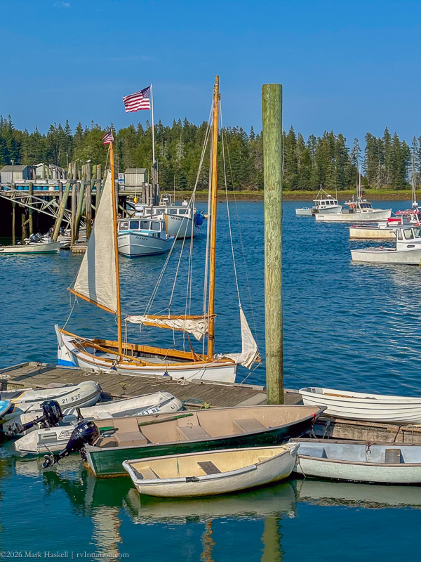 Tied up to a floating pier in Owls Head Harbor, this wooden ketch captured my heart.
