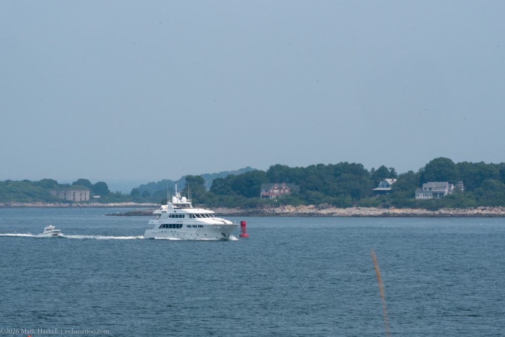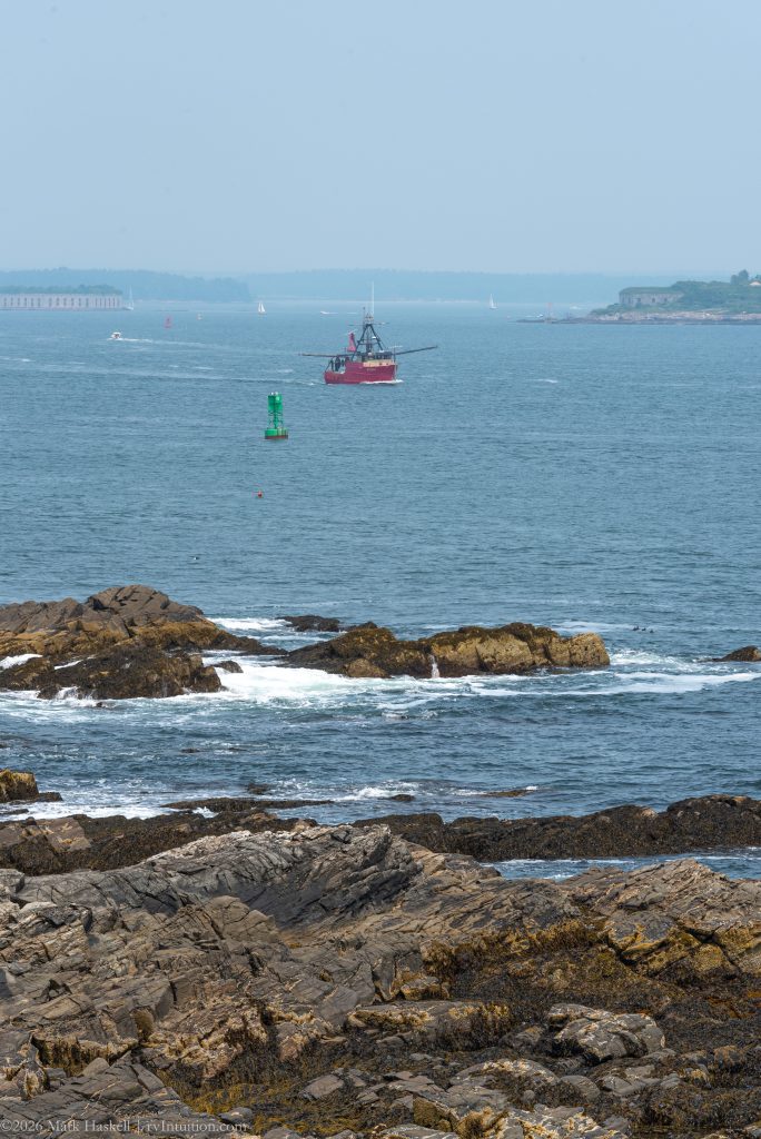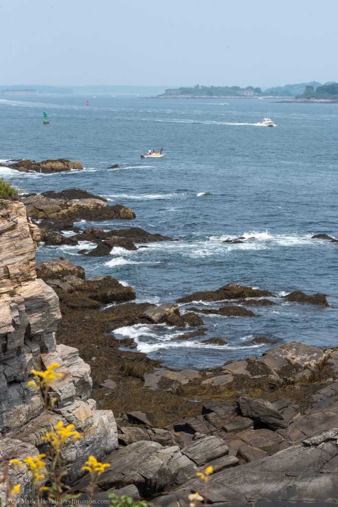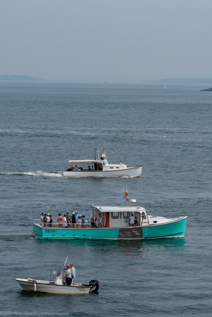 Boats of all sorts were cruising the waters around Portland Head. Several lobster boats were earning extra revenue by taking tourists out on the water.