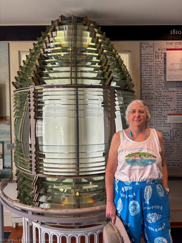 No lighthouse visit is complete without viewing a fresnel lens. You can gauge the size against Beth’s 5’6″ height.