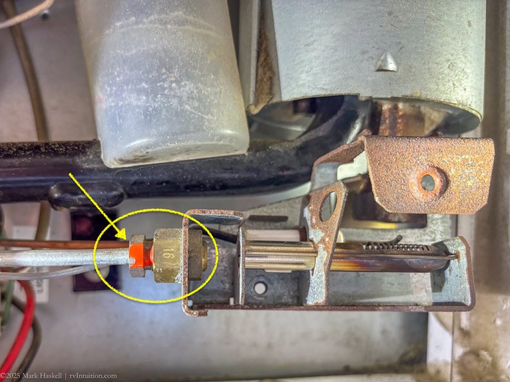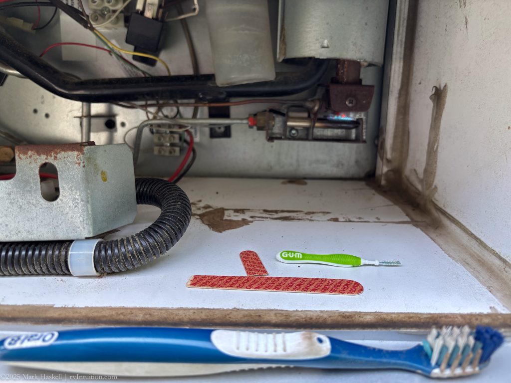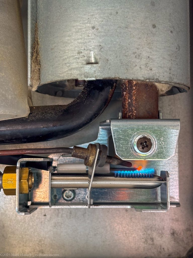 Examining the flame more closely, we decided it was time to replace the burner. It was 7 years old and was used for 3-5 months every year. Whilst researching how to troubleshoot the problem, we found excellent help from fellow Pleasure-Way owner Doug Zielke. He’s done extensive research and experimenting with this refrigerator. Look for his posts, like this one, on the Pleasure-Way RV Group on Facebook.