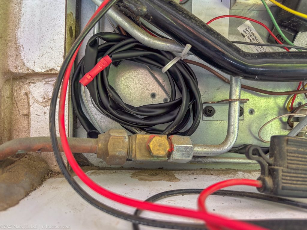 4. Splice the new ignitor wire to the old wire. We rolled up the excess and secured it with a wire tie.