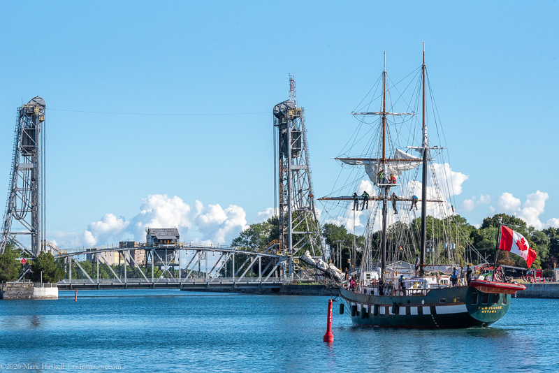 Looking towards Lake Erie to see what was coming in, we noticed two tall masts heading into the canal.