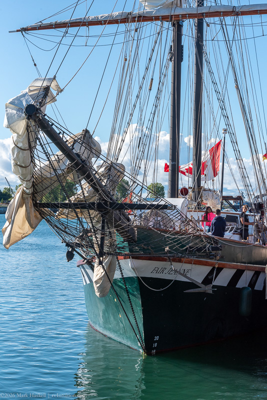 Looked up the name to learn that sv Fair Jeanne, is a 110 foot Brigantine sail training ship from Ottawa.