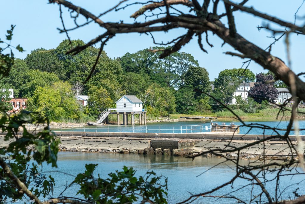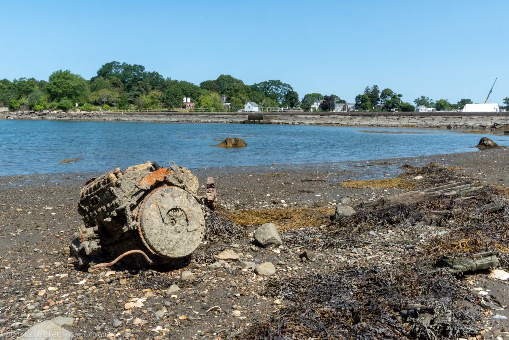 The cove has a walking path across the dam. At low tide it reveals old boat engines covered with barnacles.