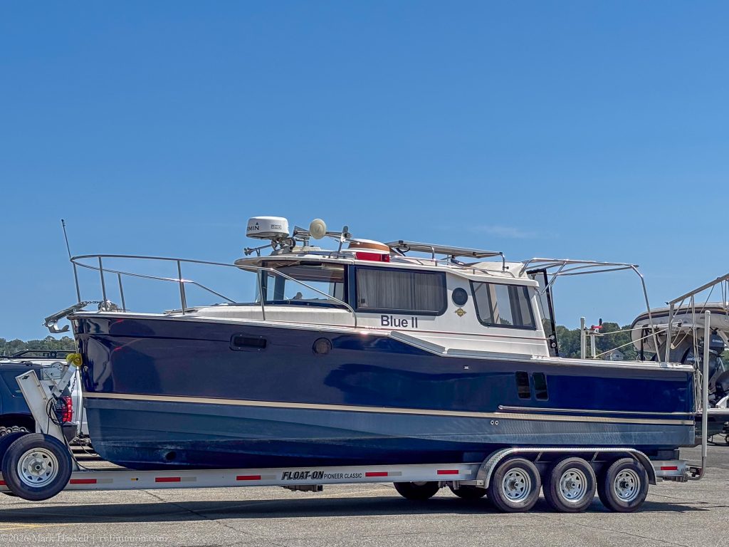 A downside, for some, to camping here is that the boat launch opens at 0500. We enjoyed watching all kinds of boats during our stay. “Blue II” was my favorite trailerable pleasure-boat.
